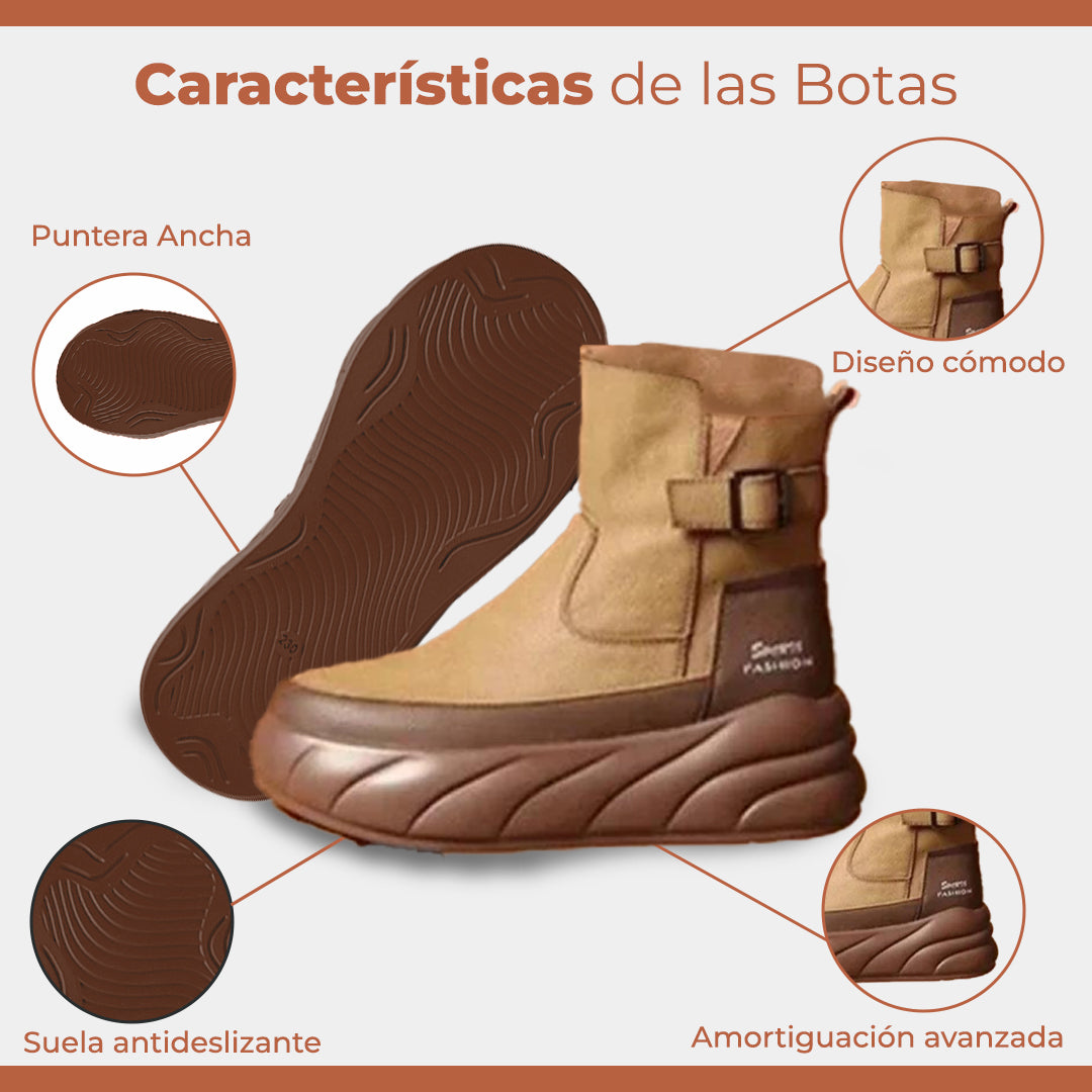 Nuestas botas no buscan pasar desapercibidas. Su diseño moderno y su plataforma robusta hablan por sí solas: estilo con propósito. Desde la suela que te impulsa con suavidad hasta el acabado en cuero sintético que combina con todo, estas botas están hechas para acompañarte donde sea, sin sacrificar comodidad. El cierre lateral te simplifica el día, mientras el detalle de hebilla le da un giro único a tu look. No se trata solo de verte bien, se trata de sentirte imparable.