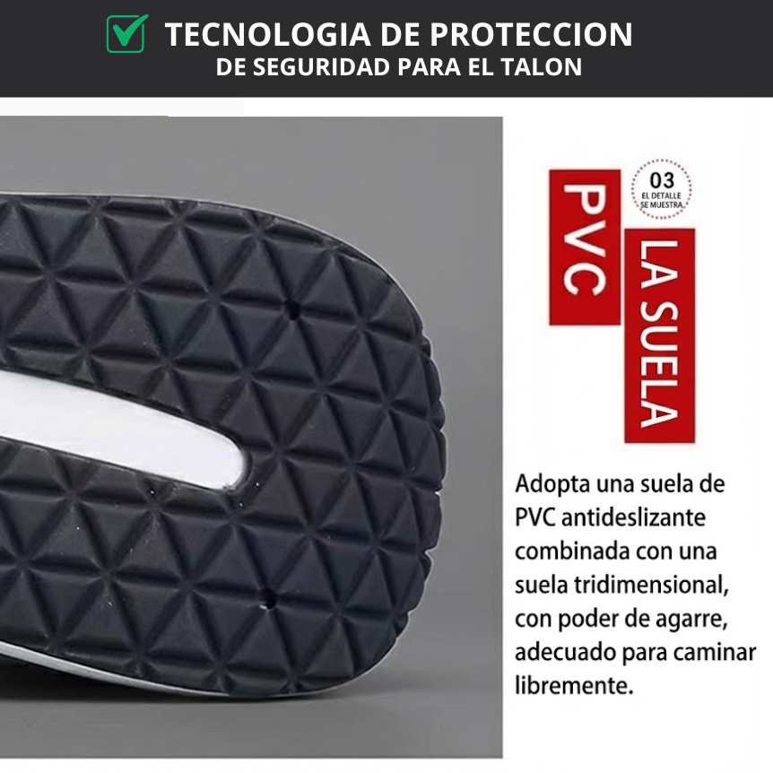 Entresuela ligera y flexible absorbe impactos sin agregar peso, mientras la suela de goma garantiza tracción segura.