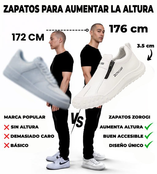 Los Zorogi incorporan una suela elevada que suma discretamente hasta +3.5 cm de altura, sin incomodidad, sin esfuerzo pero con una gran diferencia en cómo te ves y te sientes.